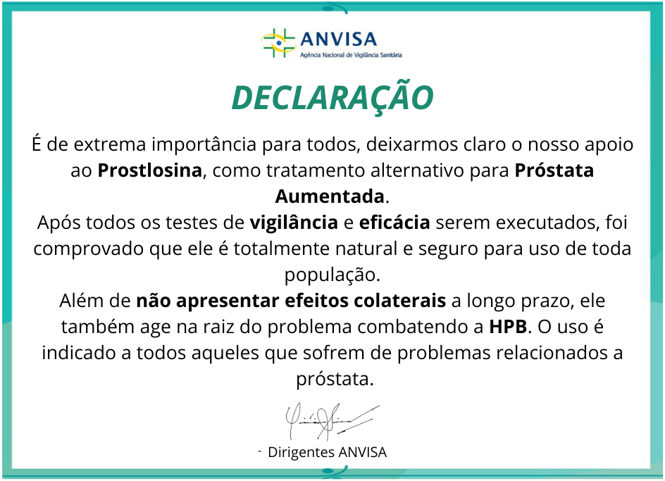 E para conseguir tudo isso, você pode usar o Prostlosina. Enquanto existem dezenas de tratamentos que sempre prometem a mesma coisa e nunca resolvem nada, o Prostlosina é o único hoje no Brasil, que age da forma correta para combater problemas na bexiga e também na próstata.